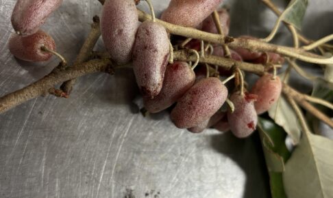 通勤途中の道で(山道です)なんかちらっと赤いものが視野に入り、 バックして戻って確かめたらグミでした。 結構大粒。ふふふ食べがいがある。 なんかこのただで手に入る食べ物、道端に生えてる土筆とか草とか実。 食べられるもの全…