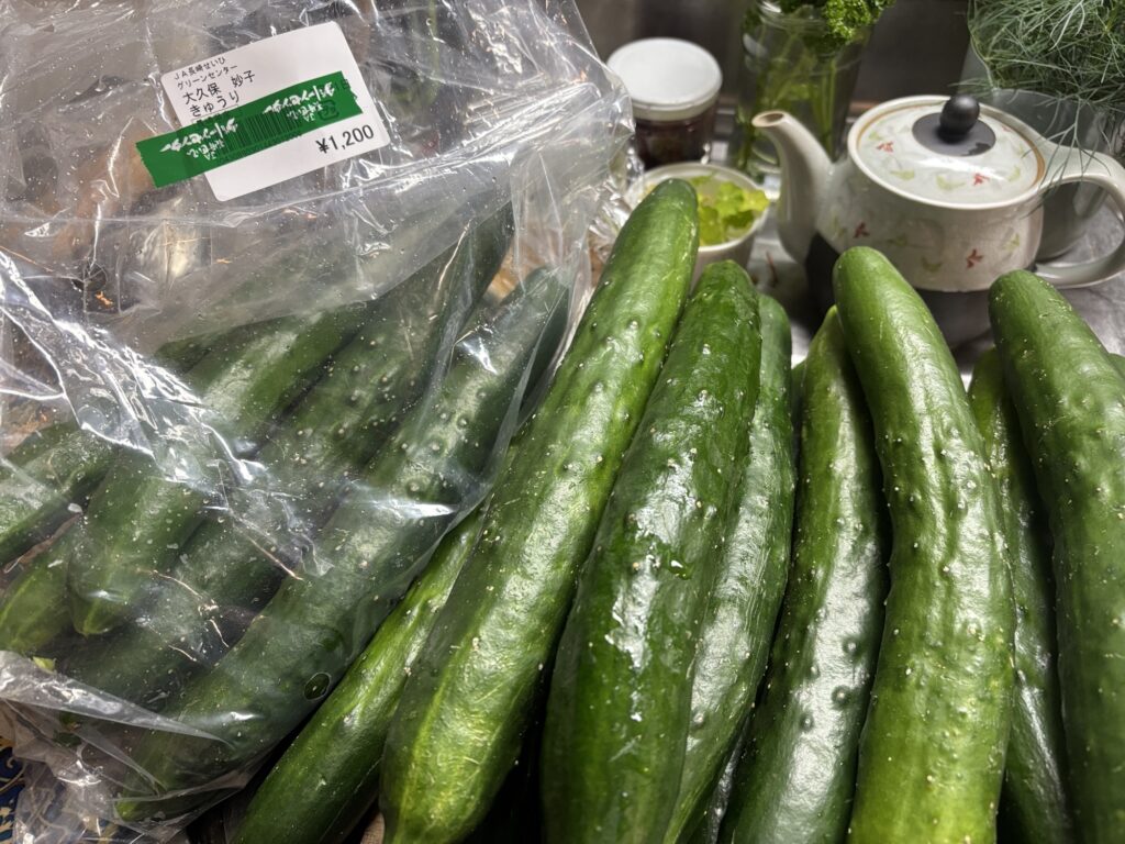 産直で立派な大きなきゅうりが29本(なんで29本?)入っていて1200円でした。