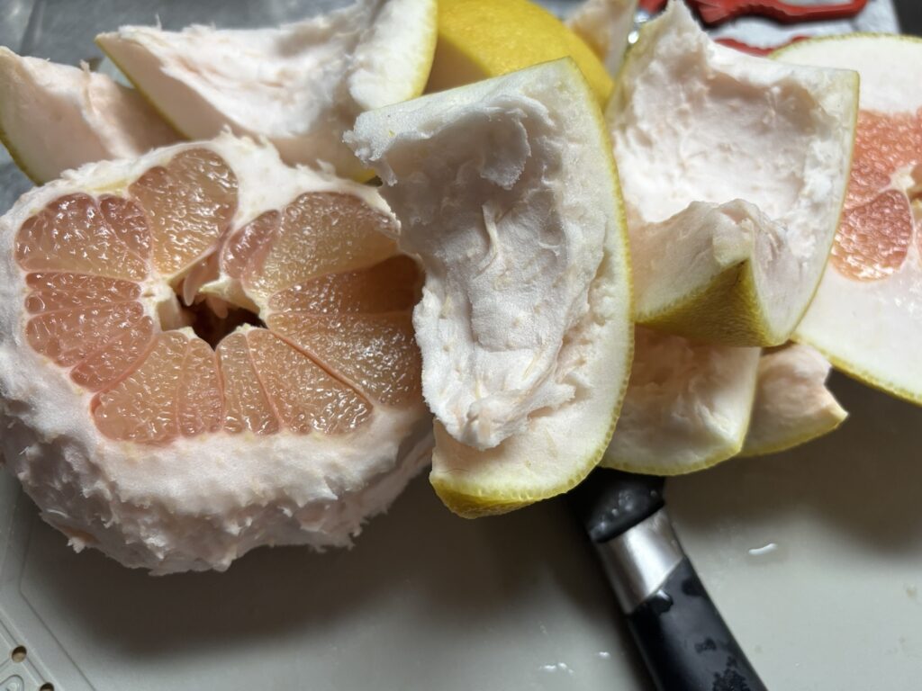 晩白柚と違ってちょっとピンク色です。
