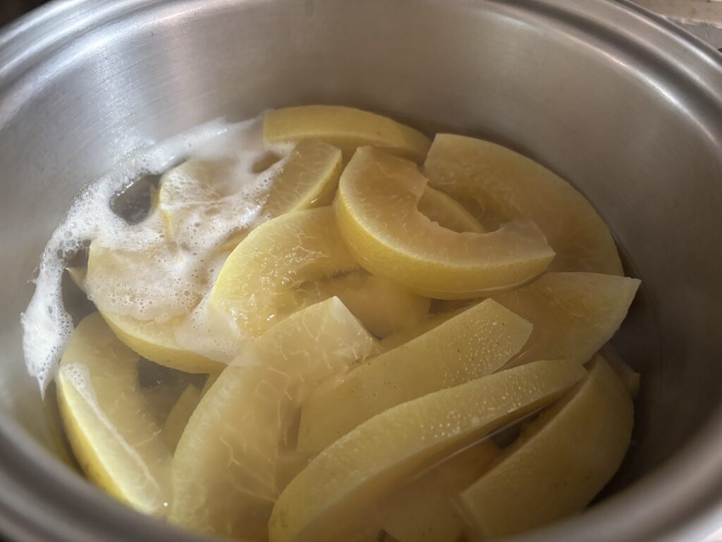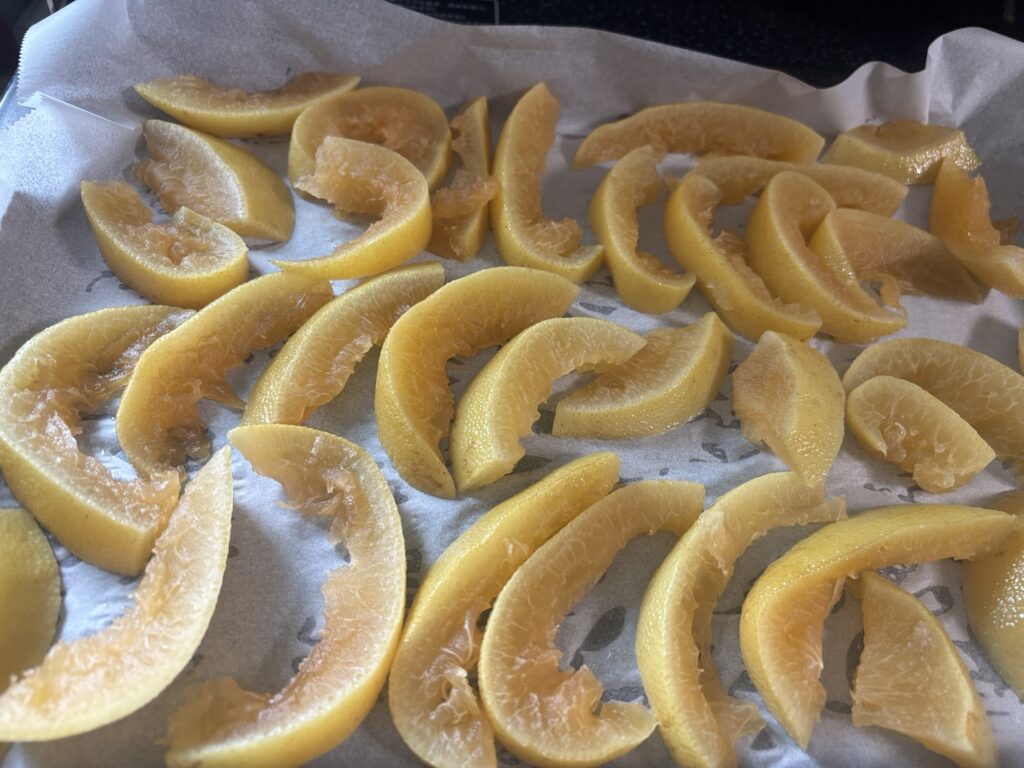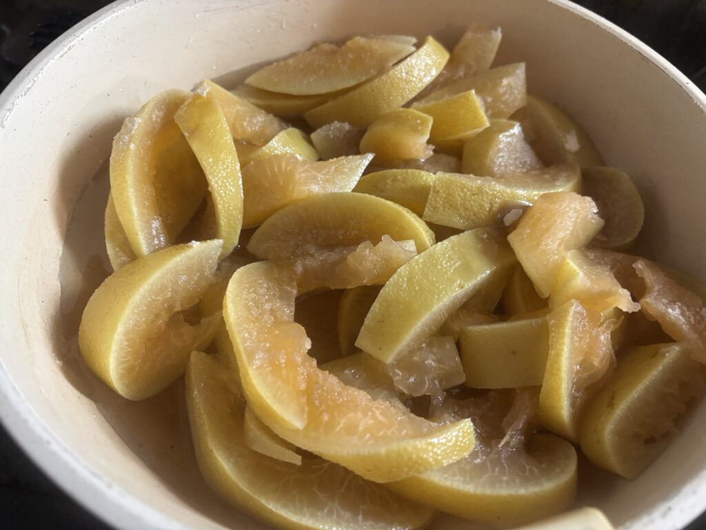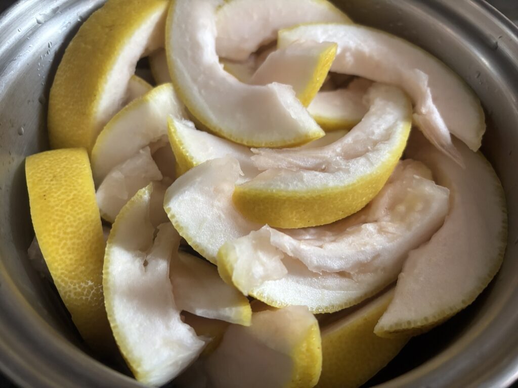 砂糖漬けには皮を使うんですがもちろん実の部分も美味しいので食べます。
