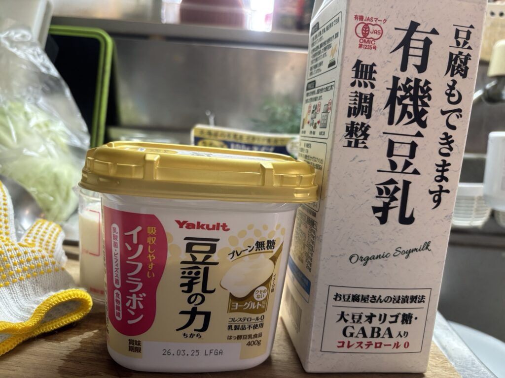 明日お客さんなので、朝食用にいつもなら豆乳プリンなんですがこの豆乳ヨーグルトがなかなか美味しくて、
