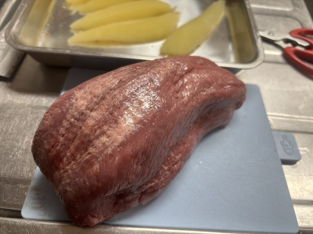 65℃で低温調理した牛タンは熱いうちに味噌で包んで、
