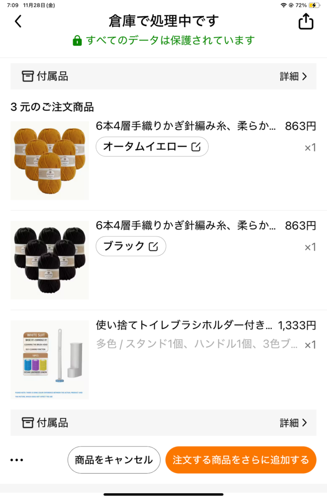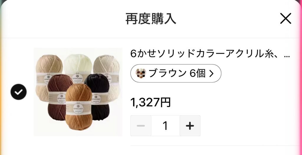 履歴を辿って同じ種類の毛糸、TEMUに今日注文しました。