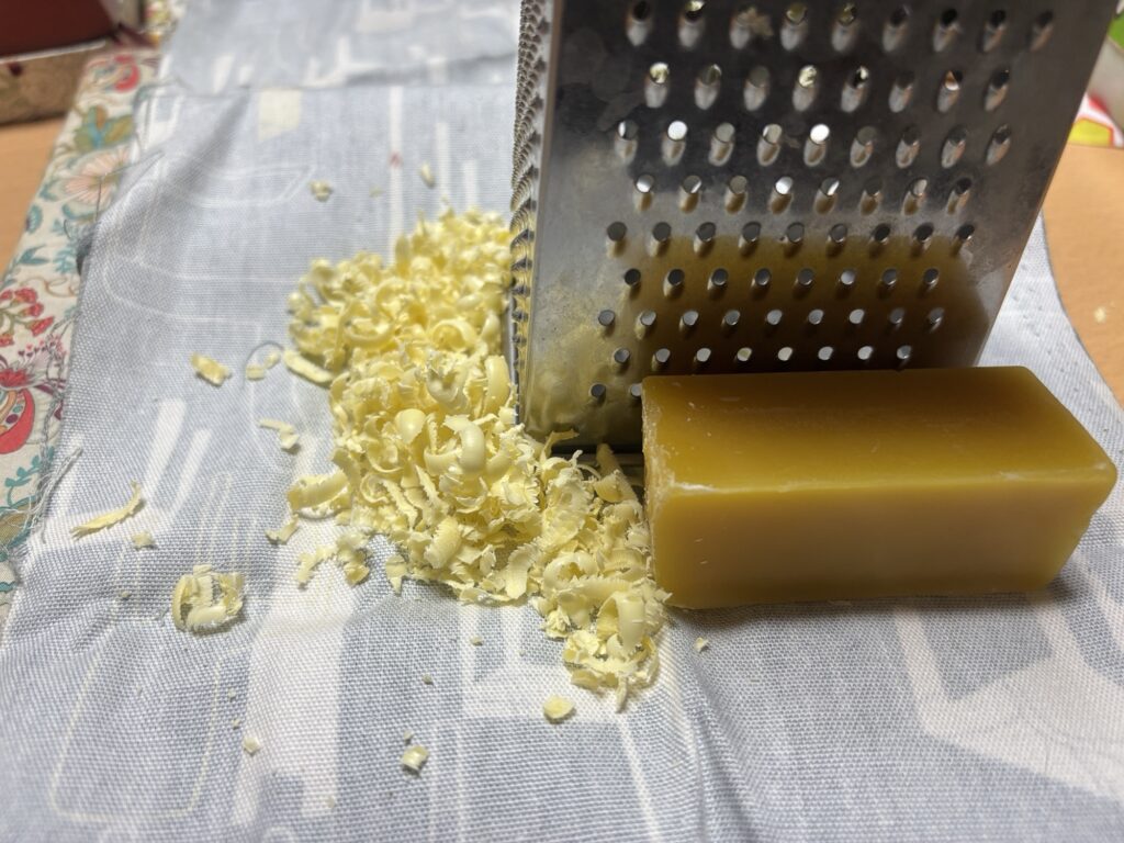 今日は蜜蝋ラップを作りたいので、おろし器でおろします。