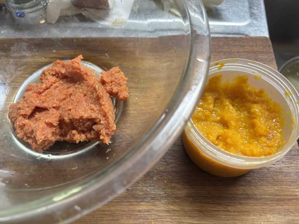 計量してなくて、全くの出たとこ勝負の適当さで作ってるから同じものは出来ないけどね。