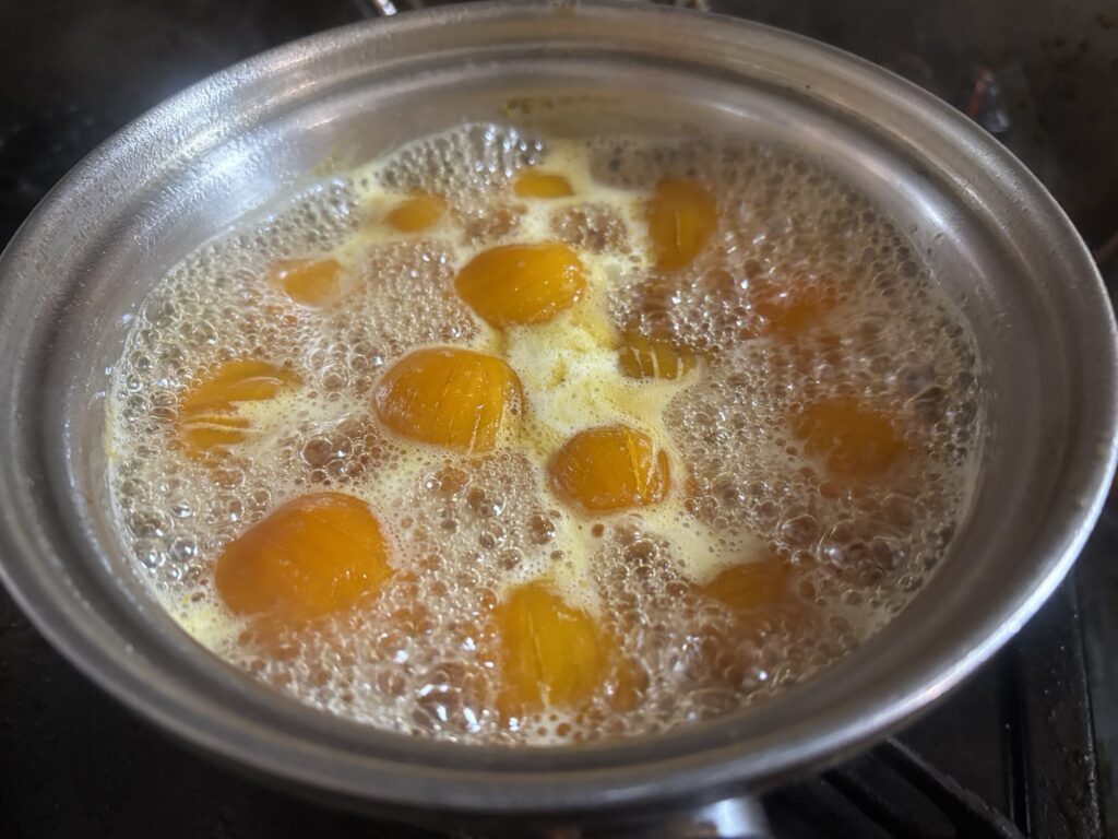 栗きんとんね、お店してる時は、両手が回らないくらい大きな鍋で、