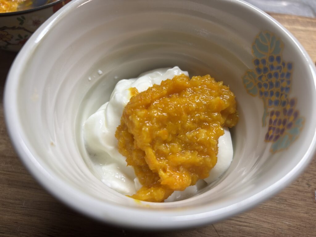 そして、デザートはせとかのジャムをたっぷりのせたギリシャヨーグルト。