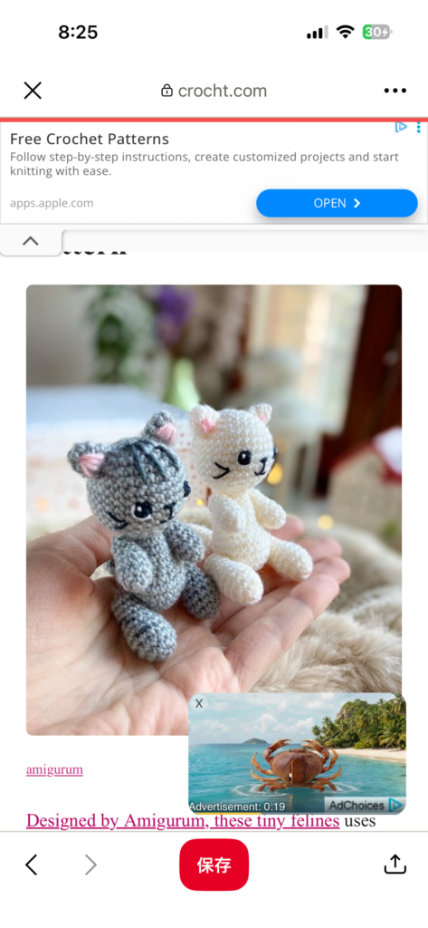 ちなみに下の方のカニ画像をクリックすると半ば強引に有料の手芸サイトに誘導されます。