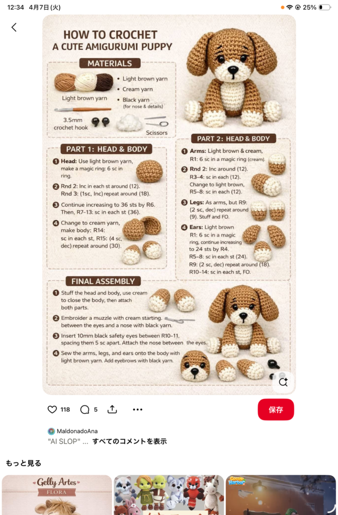 ところが、この編みぐるみAIで生成したもので、現実にある作品じゃないみたいです。