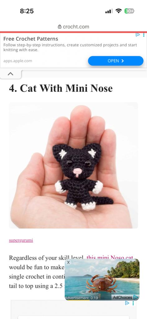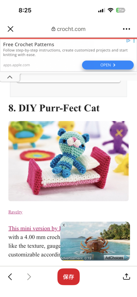 ちなみに下の方のカニ画像をクリックすると半ば強引に有料の手芸サイトに誘導されます。