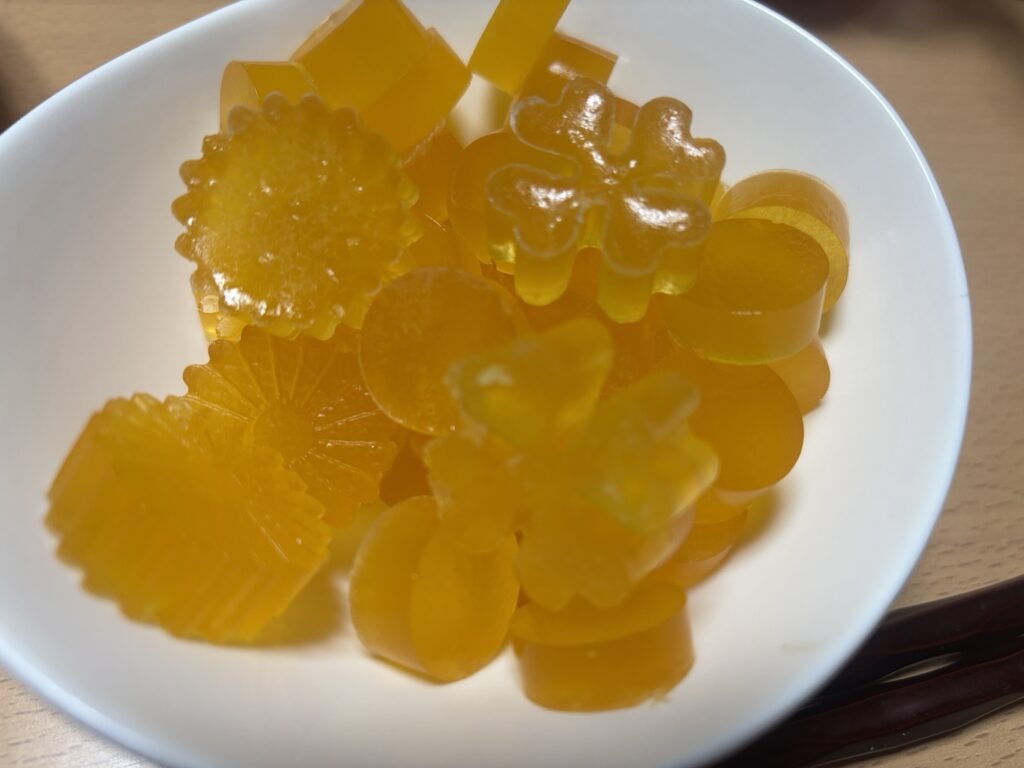 なるべく西海市を絡めたいので、西海市で採れたミカンのグミ。蜜柑がない季節はいちご?葡萄?