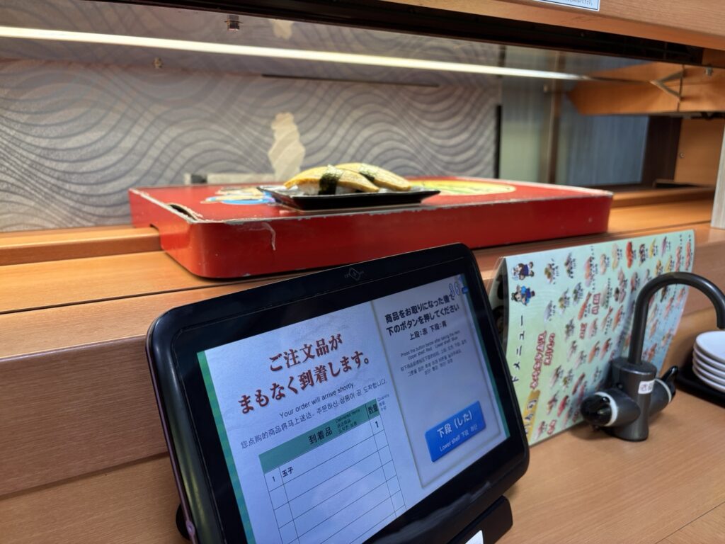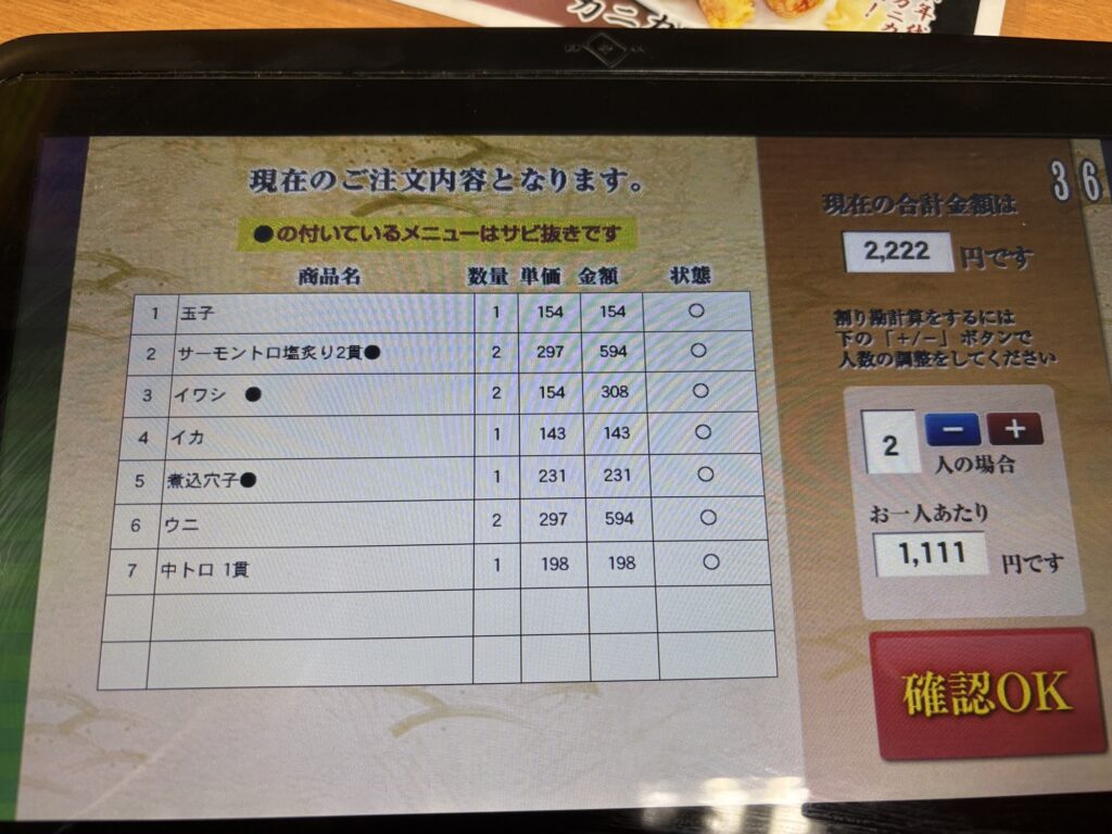 若竹丸はくるくる回る寿司ではなくて、全オーダーシステムで、
