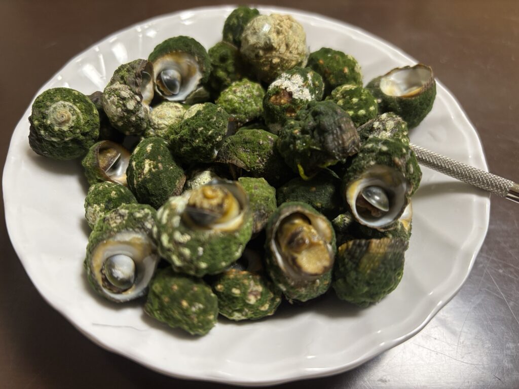 旦那さんに前の海で洗って来てもらって茹でてもらいました。美味しいんですよね〜〜。