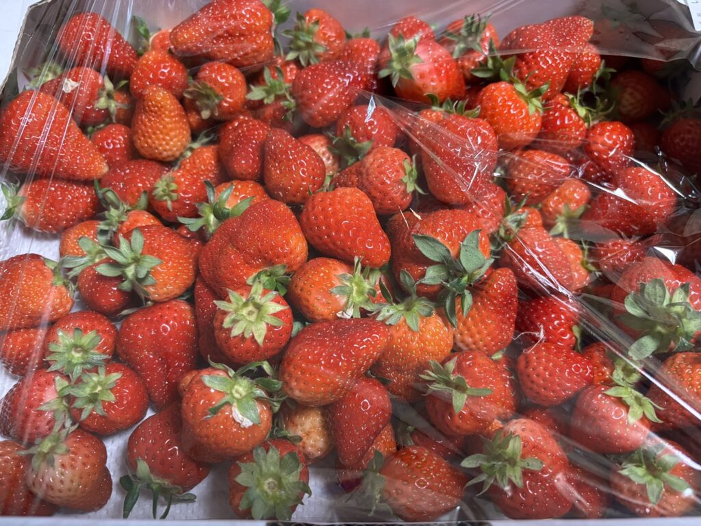 大箱のたくさん入ったジャム用いちご。