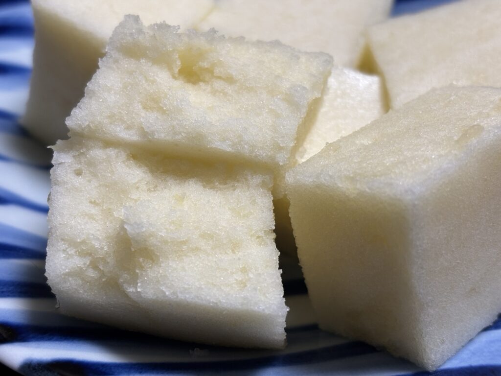 皮を剥いて小さめに切って大体300g。