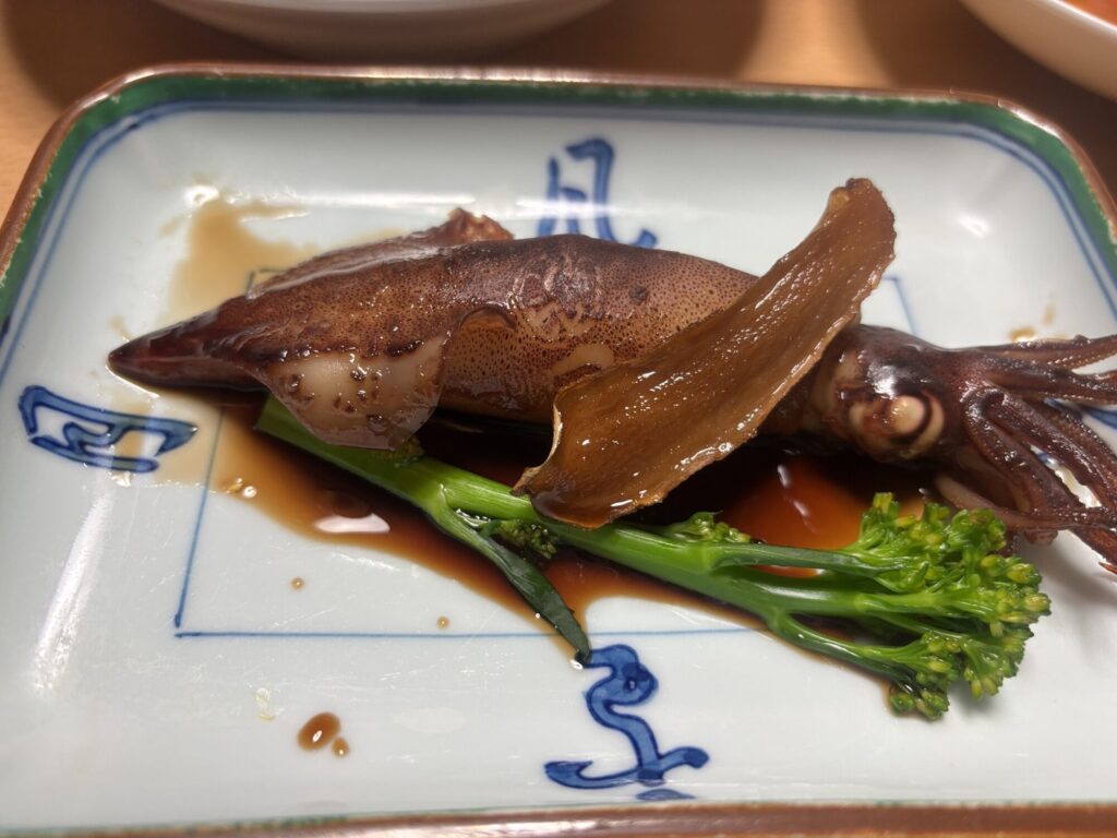 偉そうに、小さな烏賊がメイン料理のように置かれてます。