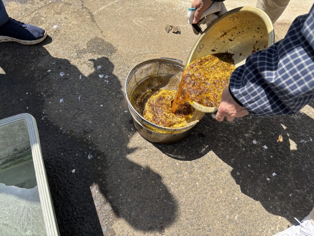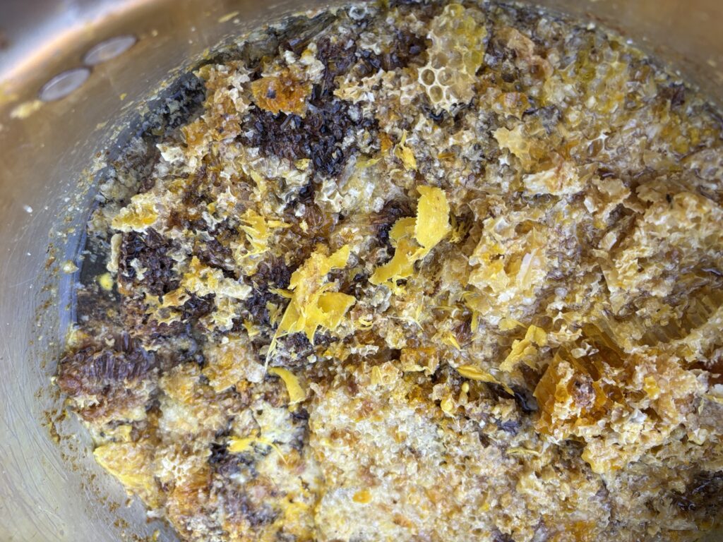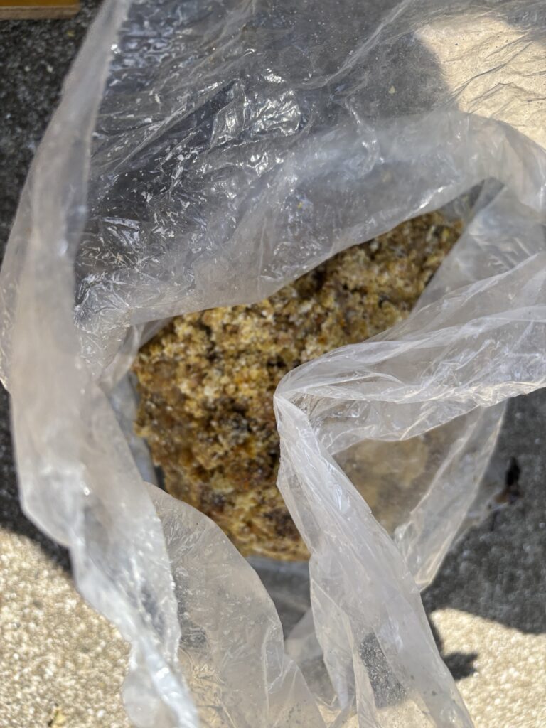 さて、ミツバチの搾りかす登場。