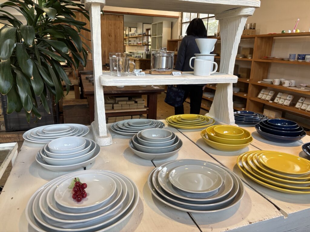 お店は何店舗かあって、雑貨屋さんや、波佐見焼きのシンプルで素敵な食器が並んでます。