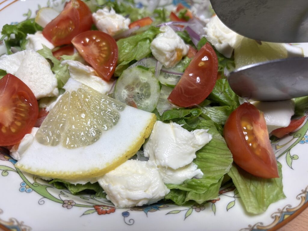それに、 モッツァレラチーズ風の塩麹付けにした豆腐のサラダ。