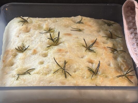朝フォカッチャ焼いてます。