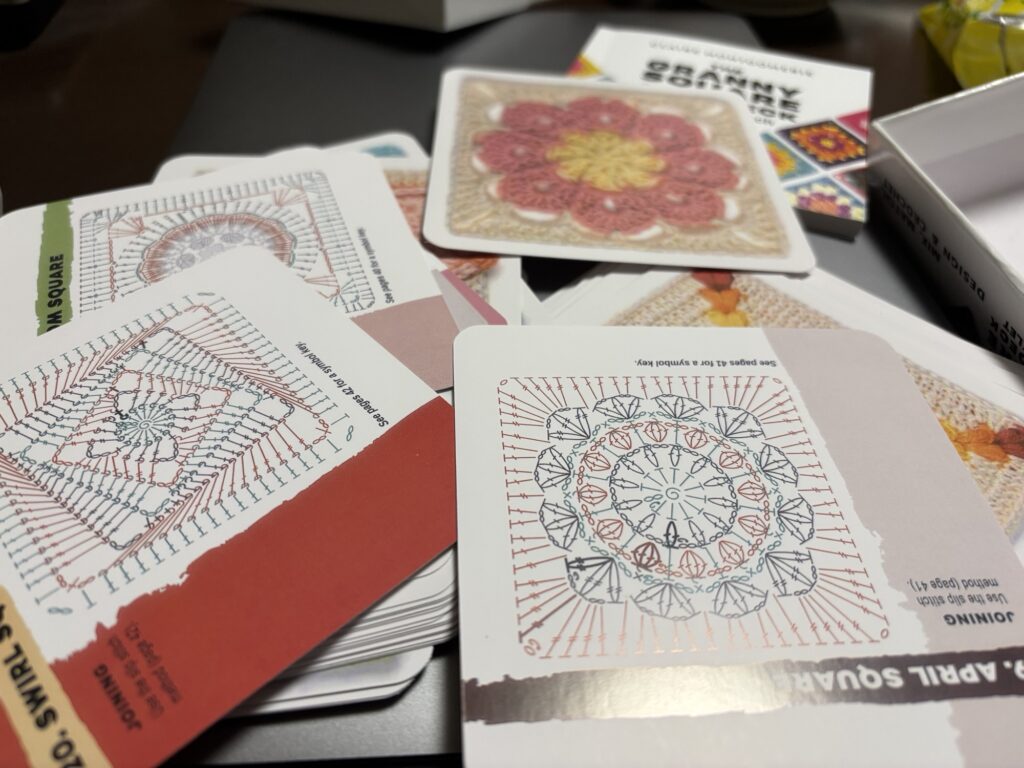 この前TRMUで買ったコースターみたいな編み物カードを取り出して、