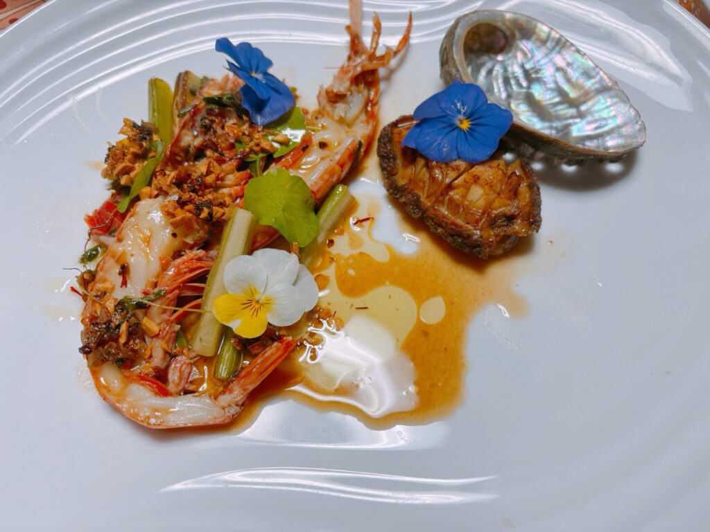 赤海老のなんとか(名前忘れた)とあわびのソテー・・だったんですが、