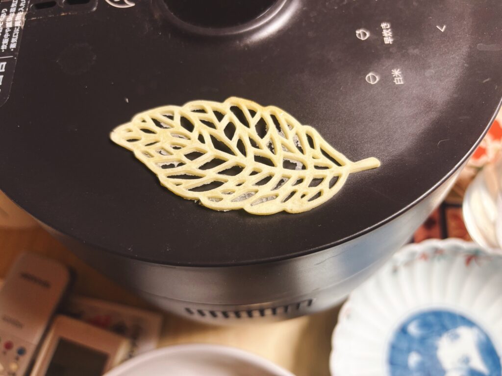 卵と小麦粉で作った甘く無いクッキー生地で焼いた木の葉。