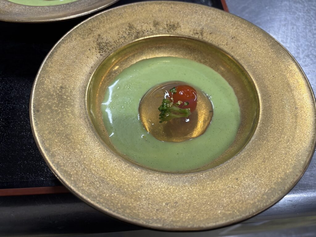 グリーンピースのスープゼリーは、スープだけで良いと言われた。