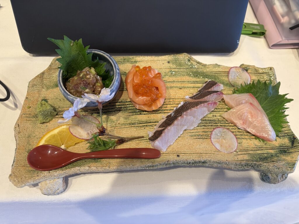 刺身は4点盛り。崎戸住まいとしては量が少ない!と思うのですが、もっと少なくて良いと言われた。
